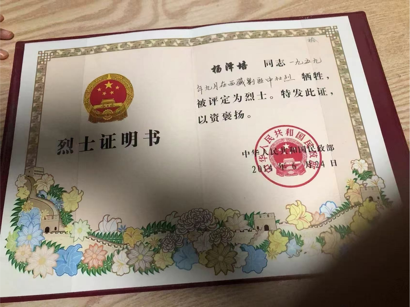 故事的扉页,镌刻着血与火的印记。1959年,17岁的杨泽培把刚缝好的布鞋塞进背包,对着含泪的家人说了一句“祖国需要我,等我回来!”便毅然穿上军装,奔赴祖国边疆,投身战场。同年9月10日,杨泽培在宁静绵羊公战斗中不幸牺牲,与无数埋骨西藏的烈士一道,用高贵的生命和鲜血换来了西藏的和平与发展。如今,在西藏芒康县烈士陵园里,他的墓碑静静伫立,仿佛仍在凝视着自己用生命守护的山河。而他那句未实现的“回家”,化作了家族血脉中永不熄灭的忠勇火种。