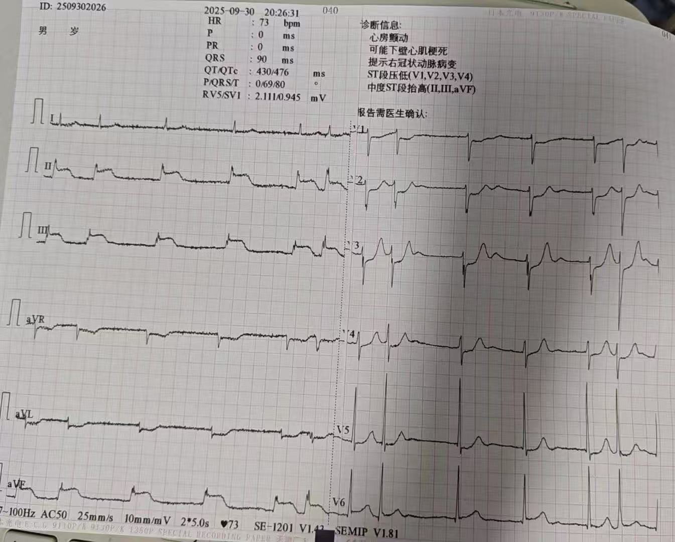 9月30日晚,患者段叔叔突发胸背部疼痛,前往瓦渡卫生室就诊。值班医生为其完成心电图检查后上传至“心电一张网”平台。我院心血管内科杨娟副主任医师在线审图后,考虑急性下壁心肌梗死,立即电话联系卫生室医生核实情况。