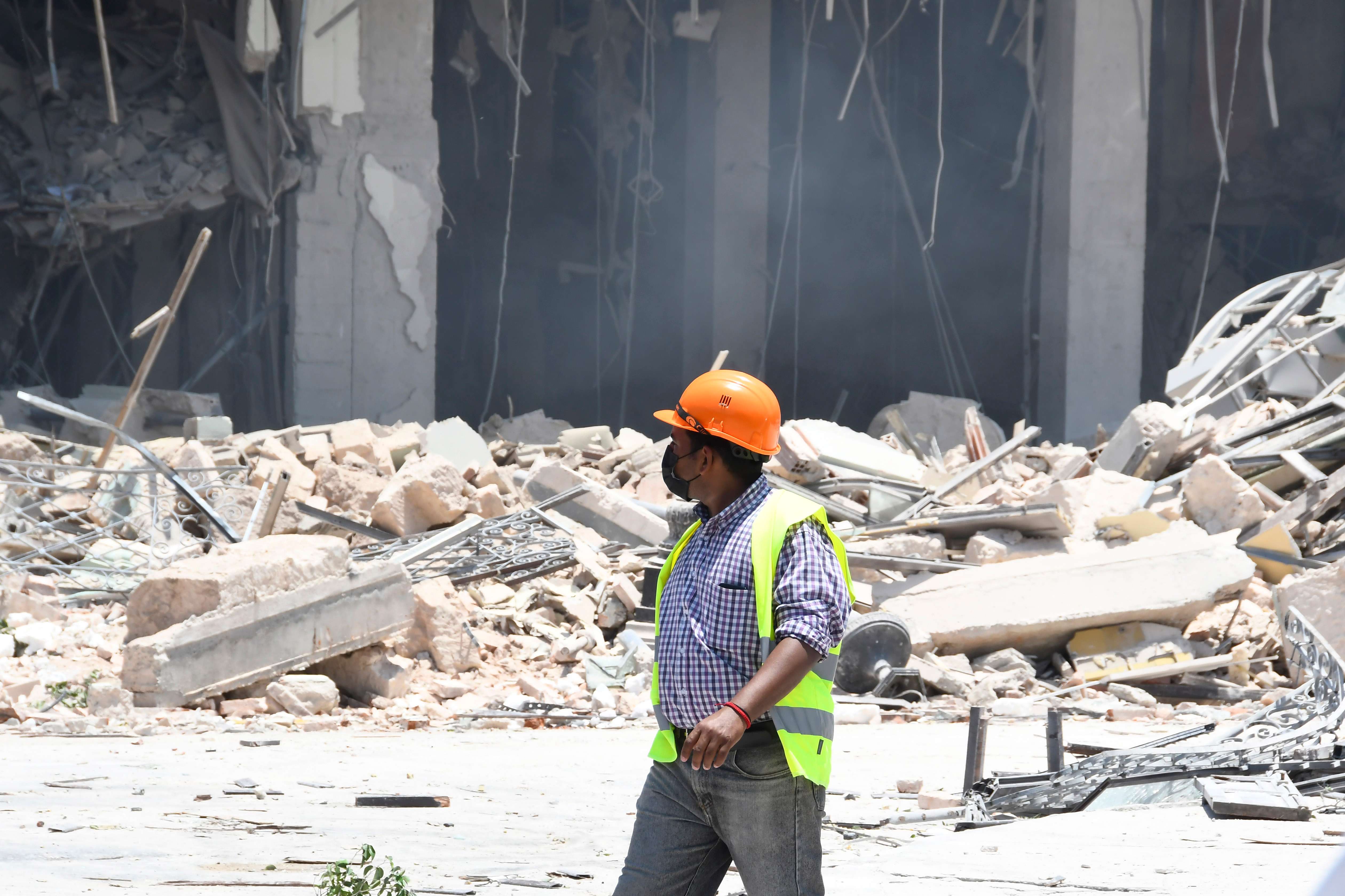 5月6日,救援人员在古巴首都哈瓦那的酒店爆炸事故现场工作。