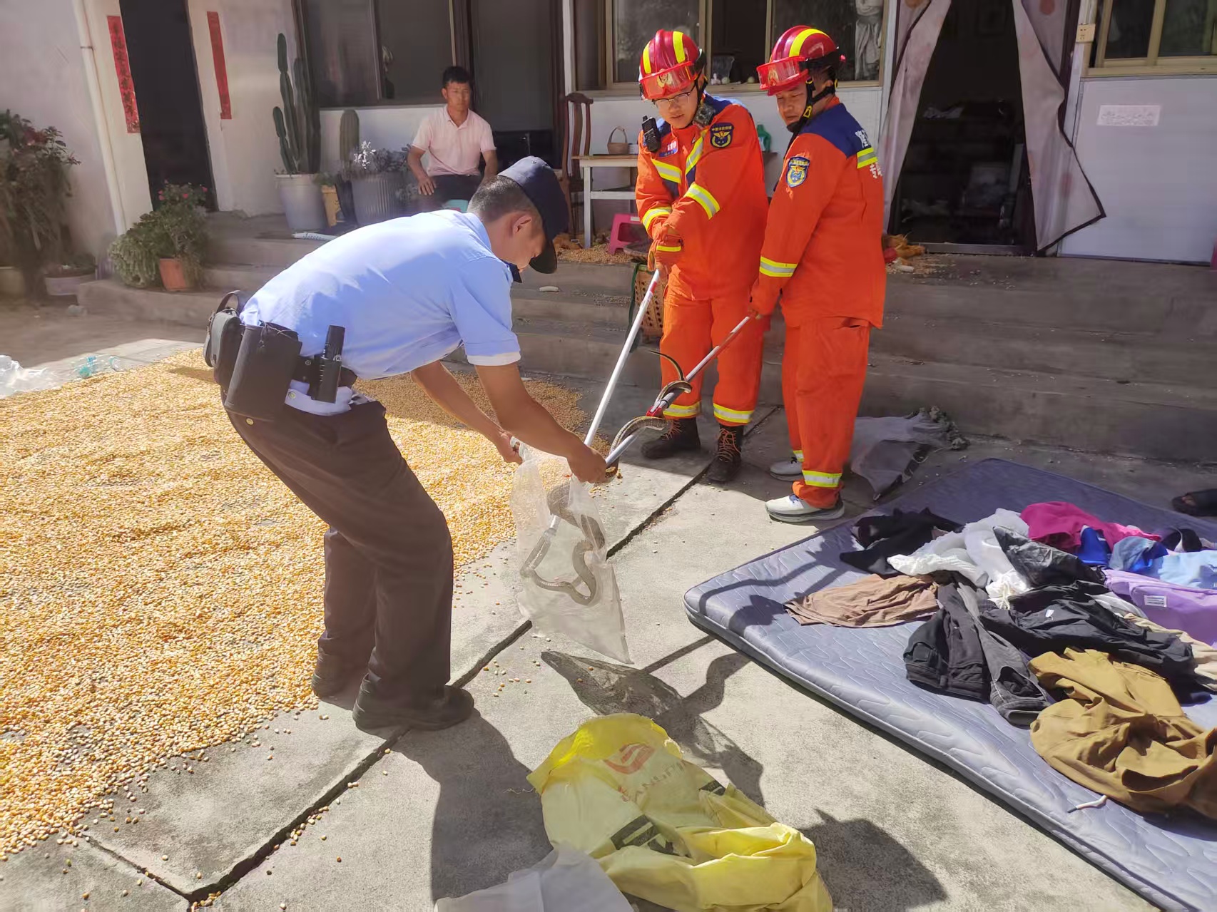 将大蛇成功“收编”后,消防队员们并未松懈。他们首先对村民家中展开了仔细排查,确保没有其他蛇类隐匿,彻底消除安全隐患。随后,队员们趁热打铁,在村民的院坝里开起了安全“微课堂”。围绕刚才发生的险情,他们用耐心而细致地讲解,向村民普及蛇类习性,并再三叮嘱:“遇到类似情况,务必记住‘不惊慌、不靠近、速报警’。”这番实用的讲解,将安全知识深深印刻在了每位在场村民的心中。