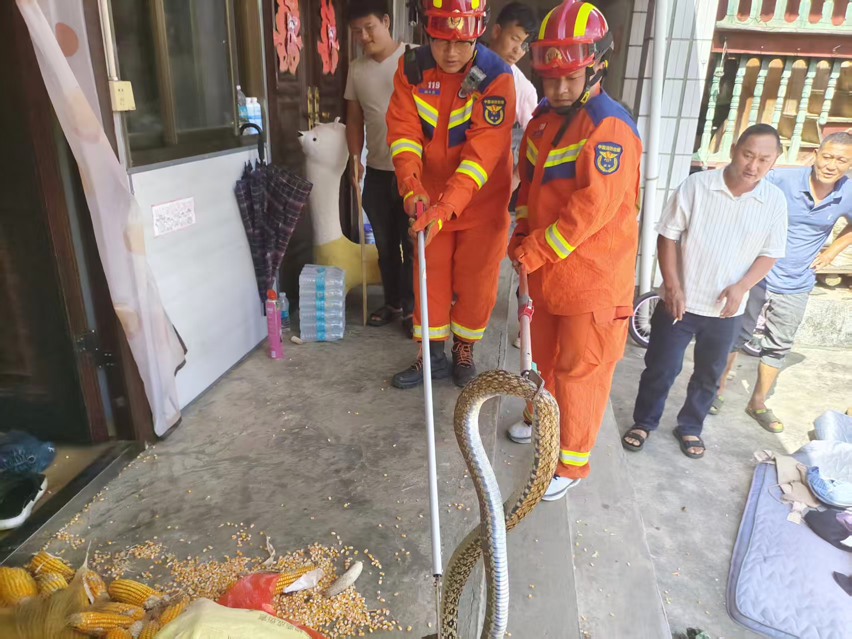 麻布蛇“私闯民宅” 消防员“紧急收编”