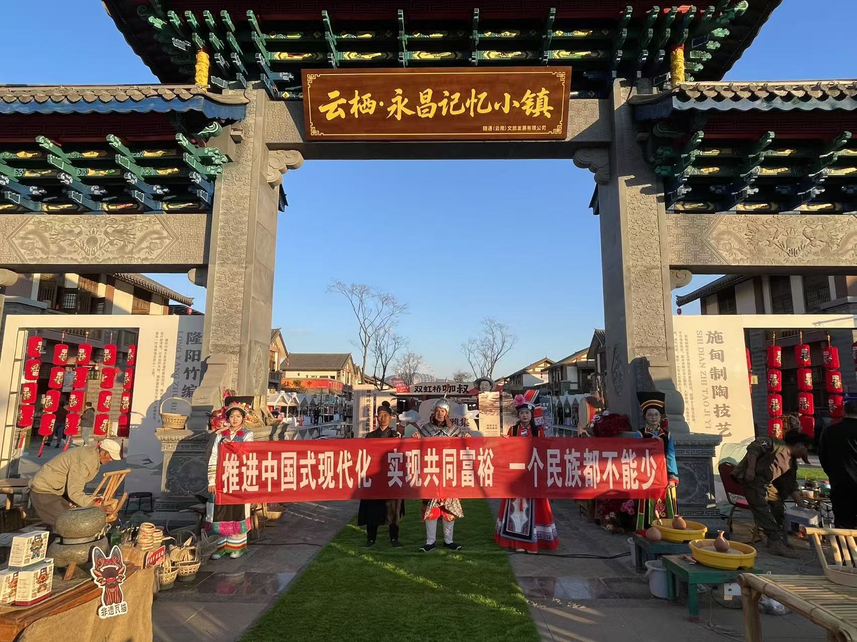 以文铸魂强认同,非遗联动聚民心。隆阳区将中华民族传统节庆与铸牢中华民族共同体意识相结合,在永昌记忆小镇开展“非遗雅集·永昌年货街”主题活动,打造集文化展演、非遗体验、年货采购、美食畅享于一体的民族团结交流平台。彝族擦大钹、佤族清戏、腾冲皮影戏等特色节目轮番上演,保山玛瑙雕刻、施甸土陶茶制作等20个非遗项目设摊展销,19种“非遗美食”供各族群众品鉴,活动专门设置“民族团结非遗体验区”,各级非遗传承人通过技艺展示、互动体验,让各族群众共同参与拓印、剪纸、糖画等11种体验项目,感受中华优秀传统文化的博大精深。累计开展体验15场,参与群众4500余人次。同步开展“送戏下乡”文化惠民活动,把舞台搭到群众家门口,在传递传统戏曲魅力的同时,切实增强各族群众的文化获得感与幸福感。