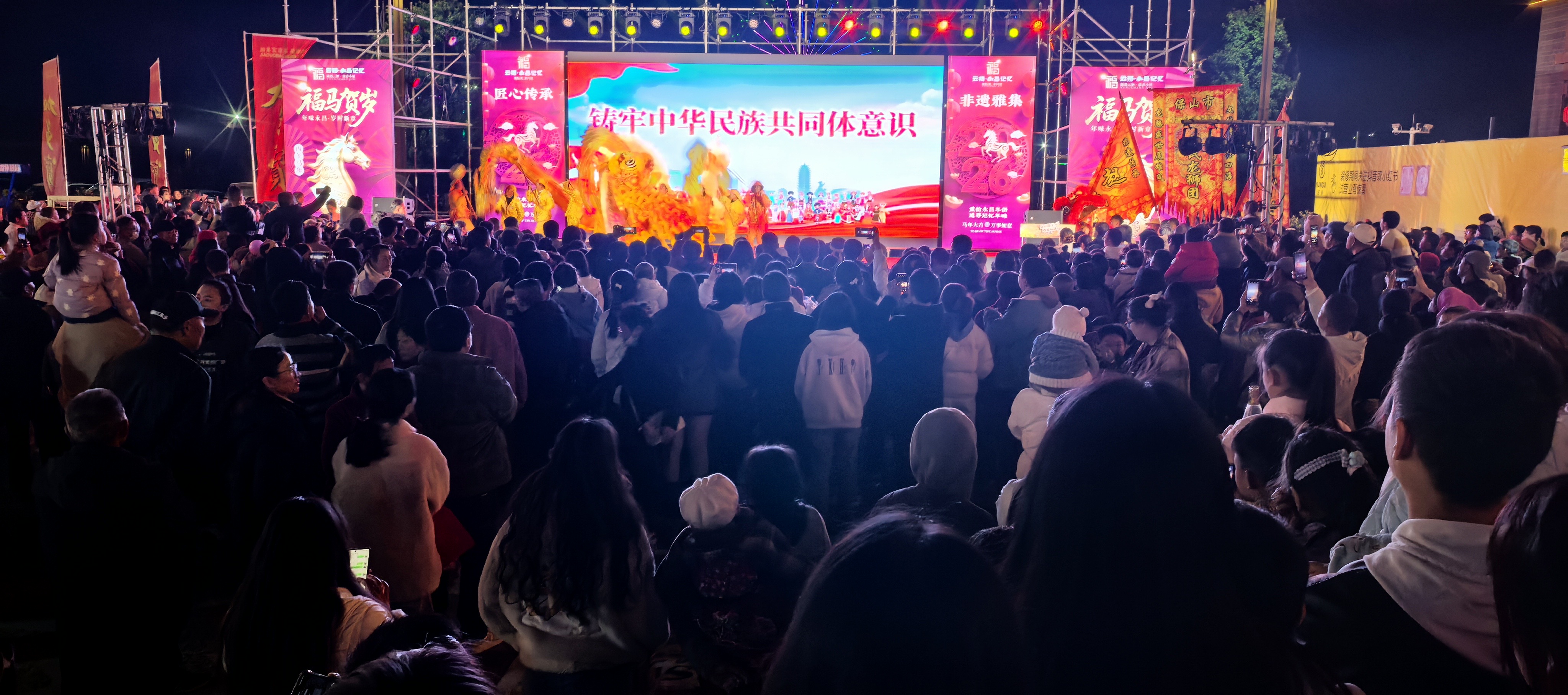 隆阳区以2026年元旦佳节为契机,将“同心筑梦·潮涌隆阳”主题民族团结进步宣传月活动与滇超联赛、非遗传承等特色场景深度融合,通过“文体搭台、民族连心、服务暖心”的多元融合模式,将铸牢中华民族共同体意识这一主线有机融入群众性文体活动和日常生活场景,有力促进了各民族广泛交往、全面交流、深度交融。1月1日,“民族团结进步宣传月”在永昌记忆小镇启动。据统计,元旦期间系列活动累计吸引各族群众参与超3万人次,发放民族团结进步宣传资料8000余份,营造了“中华民族一家亲,同心共筑中国梦”的浓厚氛围。