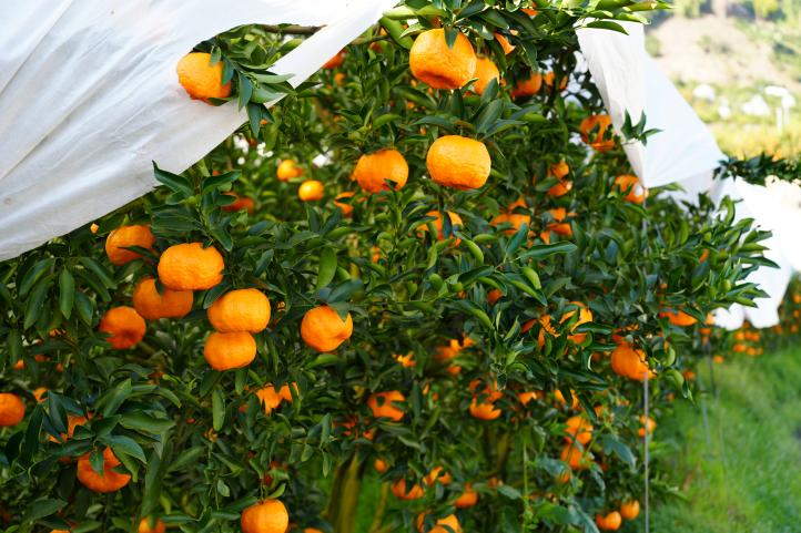 轨道运输机开进柑橘林