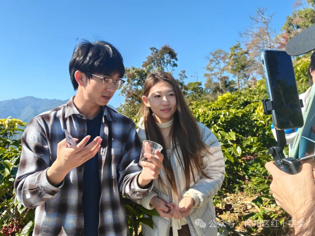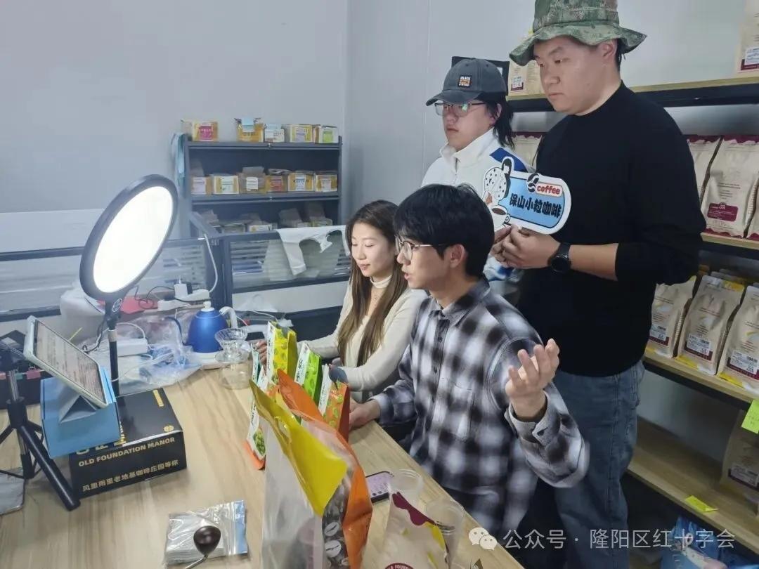 为了让公益价值精准落地,团队前期联合隆阳区红十字会深入调研,多维度了解咖啡产业,寻找助农助困工作的切入点。同学们化身“公益推荐官”,在直播间里不仅讲解商品特点,更动情分享每款产品背后的故事:“这款咖啡豆来自山区咖啡庄园,生长在海拔1600多米的高黎贡山”“这款果皮茶是纯手工制作,采用全红咖啡果的果皮,由村民们手工剥皮制作而成,工艺非常复杂,一点一滴都凝聚着他们的坚守与热爱”。