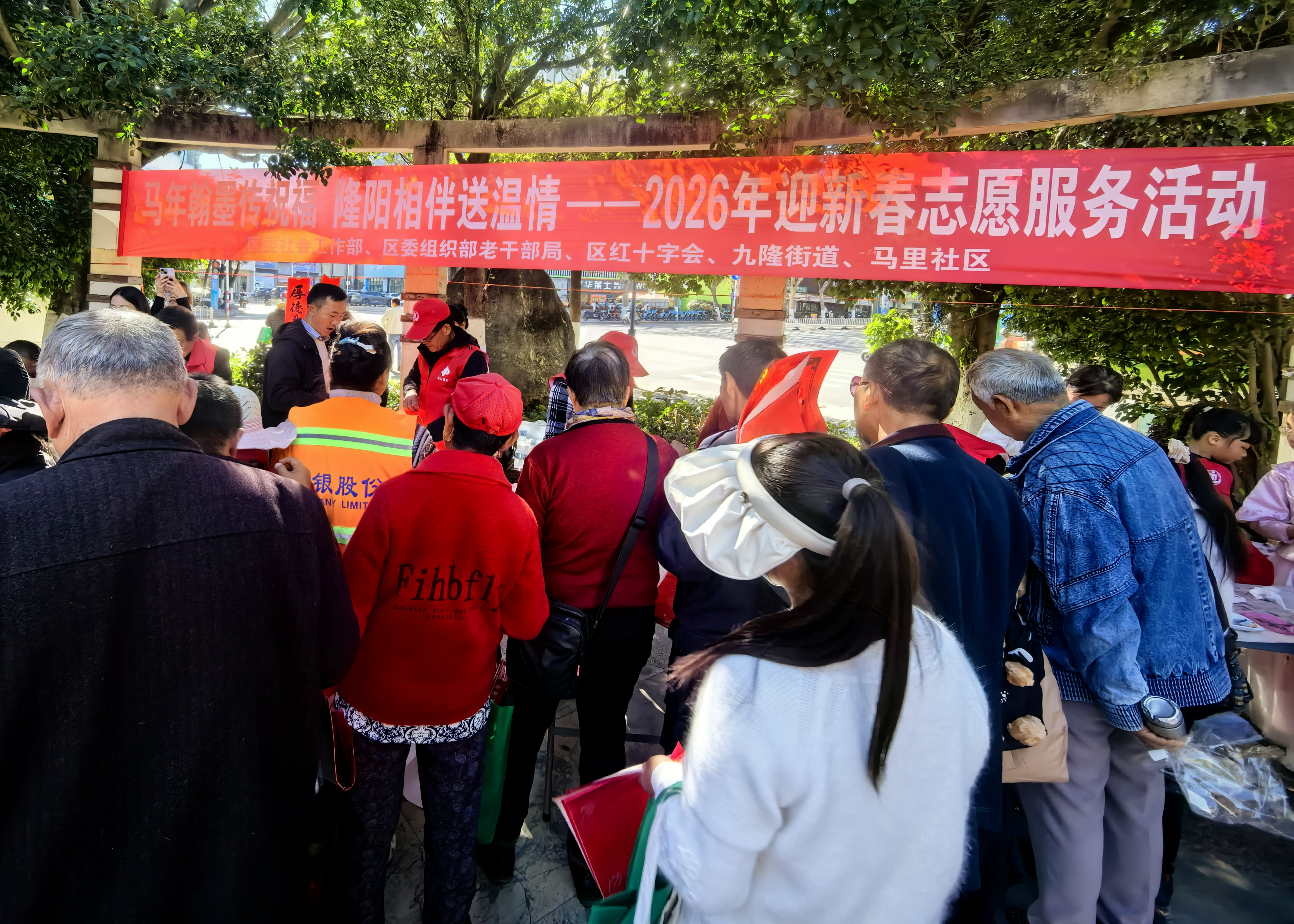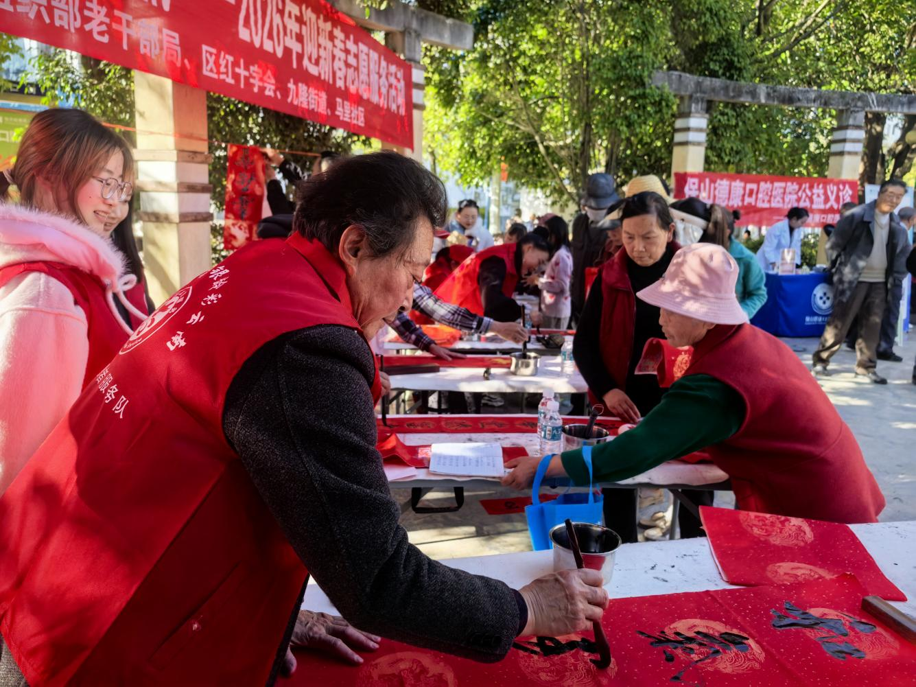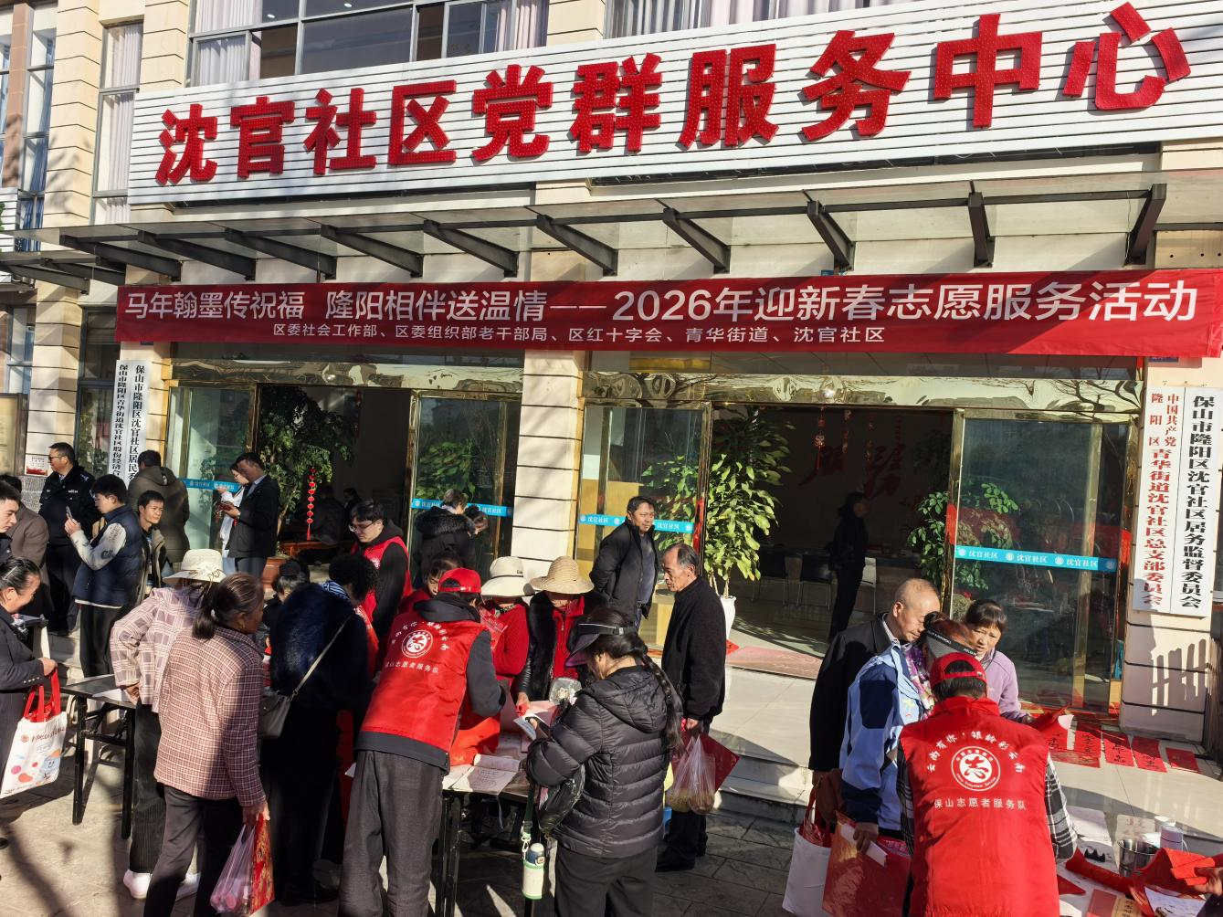 “岁序更迭,华章日新”。“一老一小”既是牵动千家万户的“关键小事”,又是关乎百姓福祉的民生大事。为践行志愿服务精神,弘扬中华优秀传统文化,抓好“一老一小”这两个重点,精准为群众排忧解难,营造喜庆祥和的节日氛围,在2026年新春佳节即将到来之际,隆阳区委社会工作部联合区委组织部老干部局、区红十字会、九隆街道、青华街道组织志愿者走进马里社区、沈官社区开展“马年翰墨传祝福‘隆阳相伴’送温情”—2026年迎新春志愿服务活动,向广大社区群众送上新春祝福。