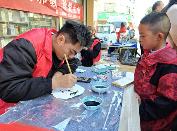 现场特设“福文化小课堂”,志愿者为青少年讲解“福”字起源与春节贴“福”习俗,引导孩子们感受传统文化韵味。面部彩绘、画扇子等摊位人气十足,孩子们在彩绘师笔下点缀生肖马等图案,在团扇上尽情创作,在实践中收获快乐。