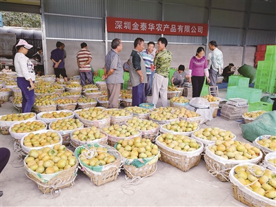 2018年,为做大做强甜柿收购及外销,王强将收购点搬到了王头寨社区,向王头寨及村民租用了共4亩土地建设收购大棚,并每年支付给社区1.5万元用于壮大村集体经济收入。得益于徽商固有的“讲道义、重诚信”和“诚信为本、以义取利”的经营理念和良好信誉,每年交售季,除蒲缥本地外,隆阳域内的西邑、板桥、辛街,甚至邻县施甸的果农,都会将柿子拉运至王强的收购点进行交售。
